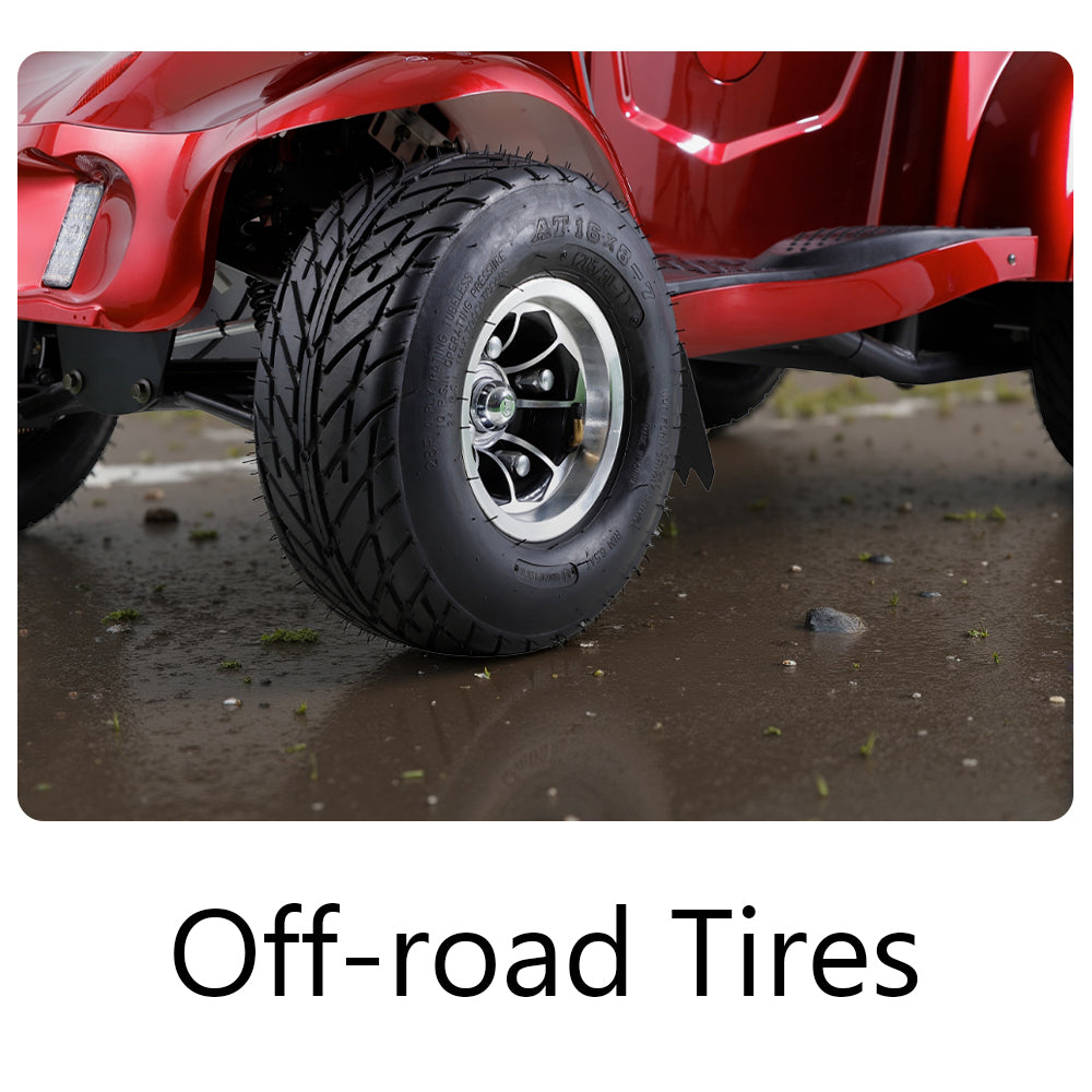 - 16×8-7 off-road tires: superior traction for rugged terrain
